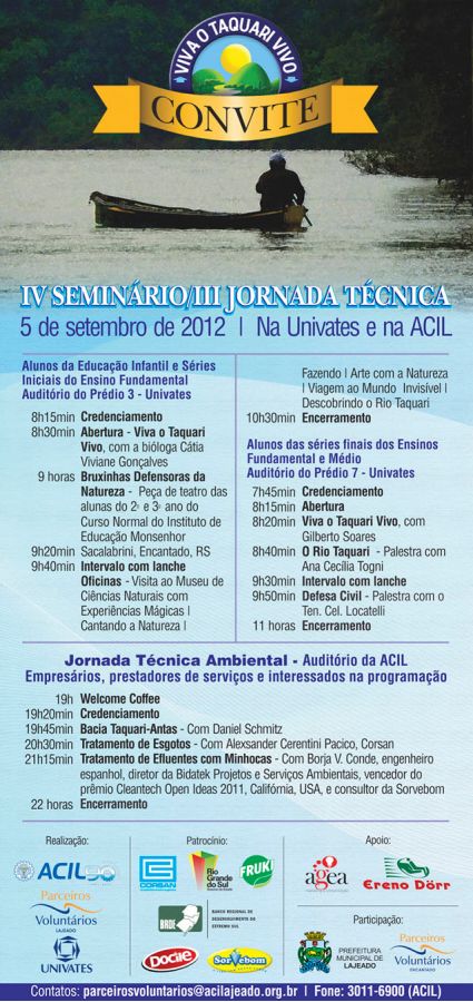 NOTÍCIAS 03/09/2012 Jornada Técnica Viva o Taquari Vivo Participe da Jornada Técnica Viva o Taquari Vivo! Taquari Vivo